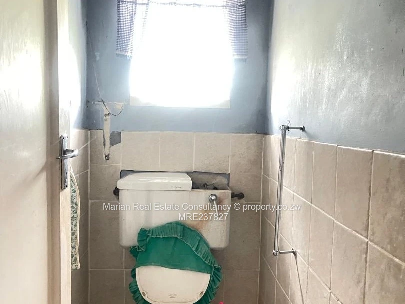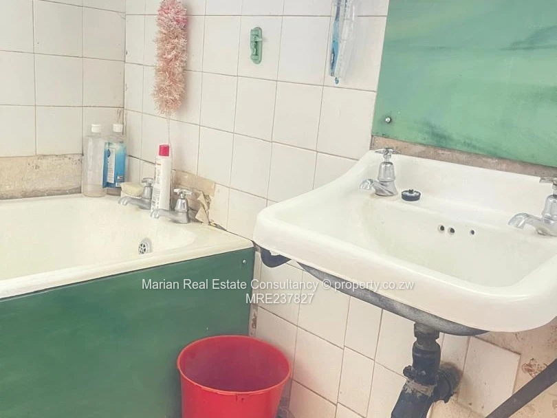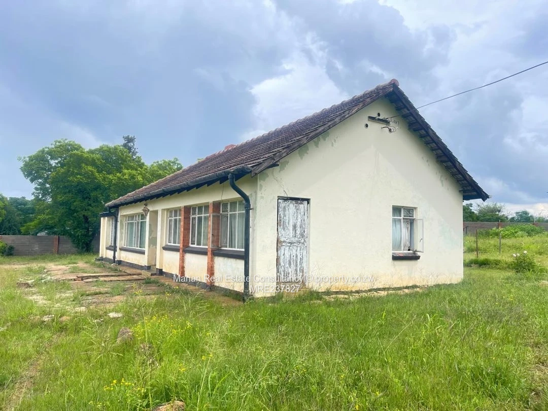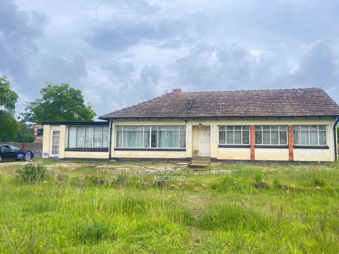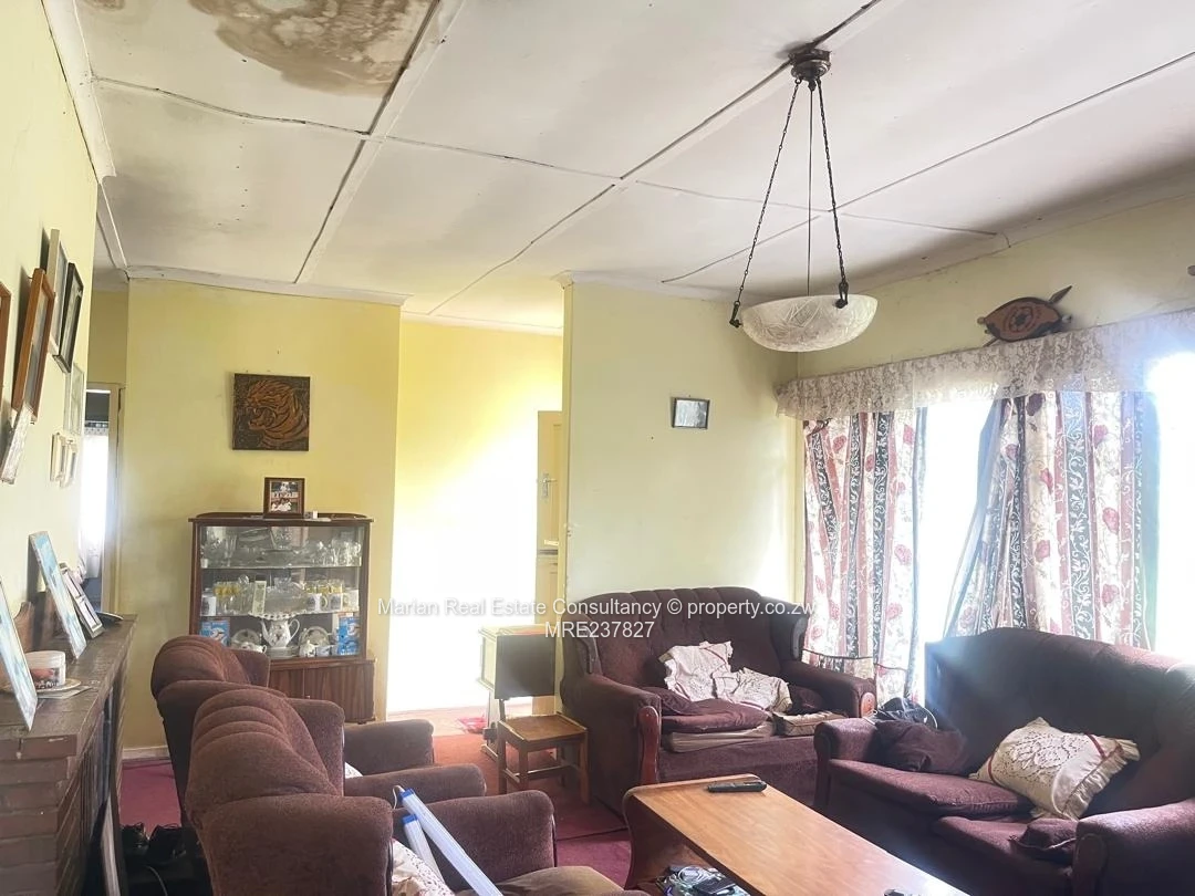 4 bedrooms, dining, sitting room, and kitchen, ceiling (needs attention) wooden floor and ceramic tiles. Fitted wardrobes in 3 bedrooms. Separate bathroom and toilet. Roof under tiles. Servants quarters 1 with shower and toilet. Walled (3 sides) §and gated. Stand measuring 4638sqm.Title deeds and Section 120 available