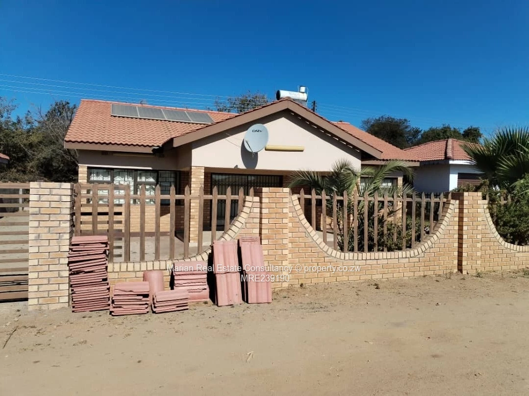 3 bedroom (main ensuite) all fitted, open plan dining and lounge and kitchen with mordern fittings including stove... Ceiling and tiles. Paved right round. Solar system 5kva and gyser. Jojo tank 5000l and pump... Walled and Gated. Clean paperwork and ready for tittle deed. Viewings strictly by appointment. Price USD125000